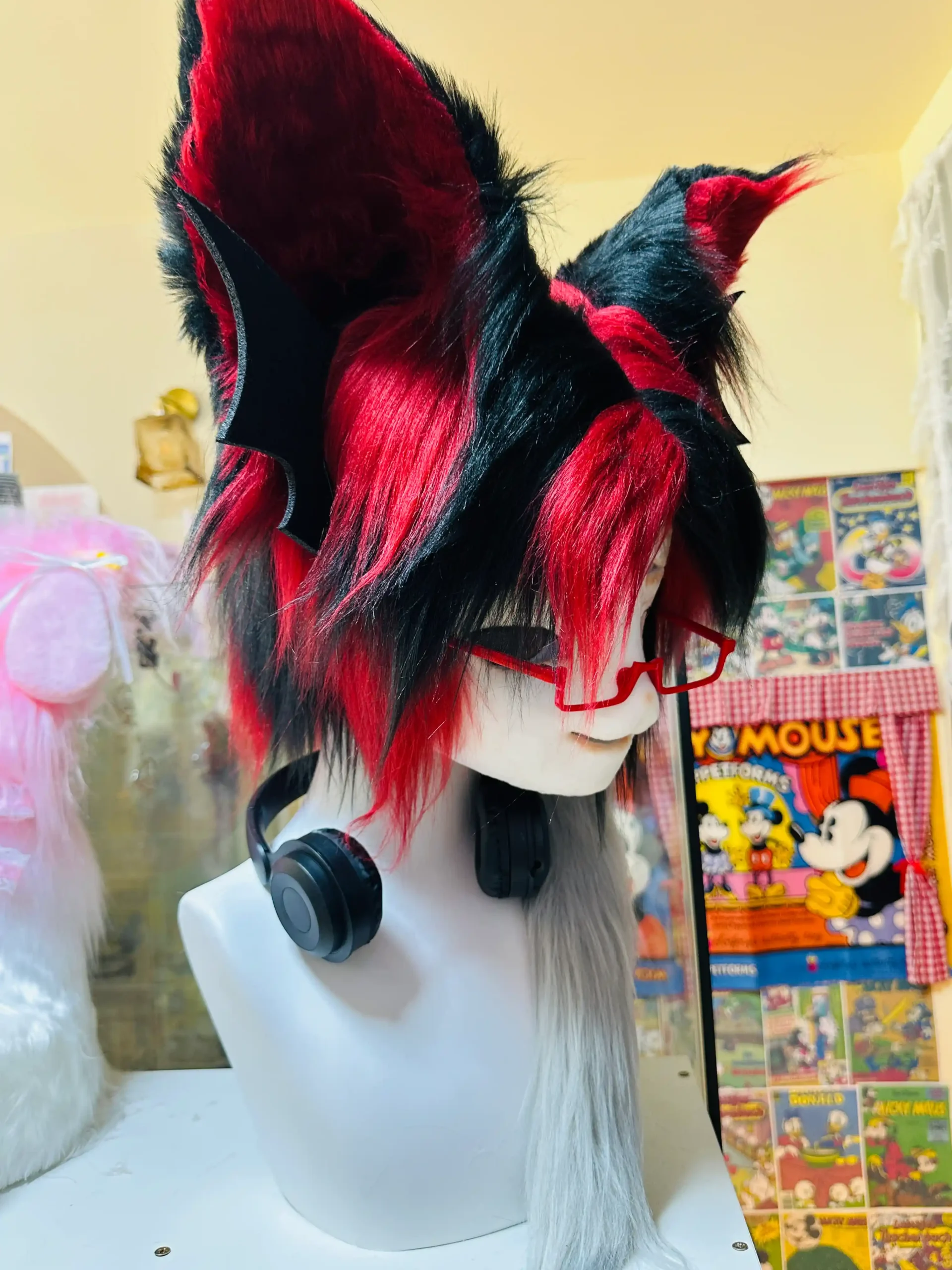The sharp ear shapes, split-color hair design, and tech-inspired accessories create a bold street presence with a confident, playful attitude rather than a dark or gothic mood.