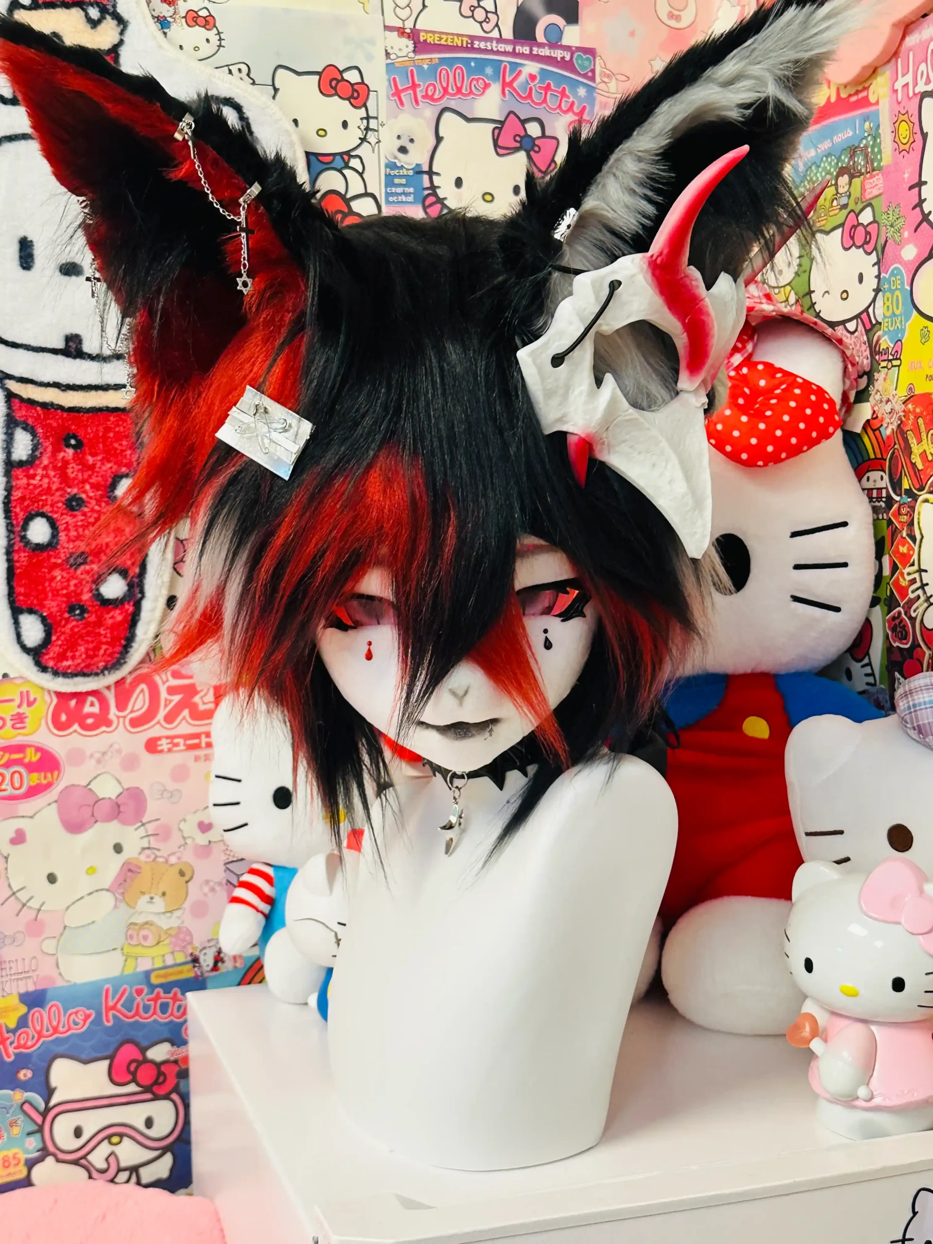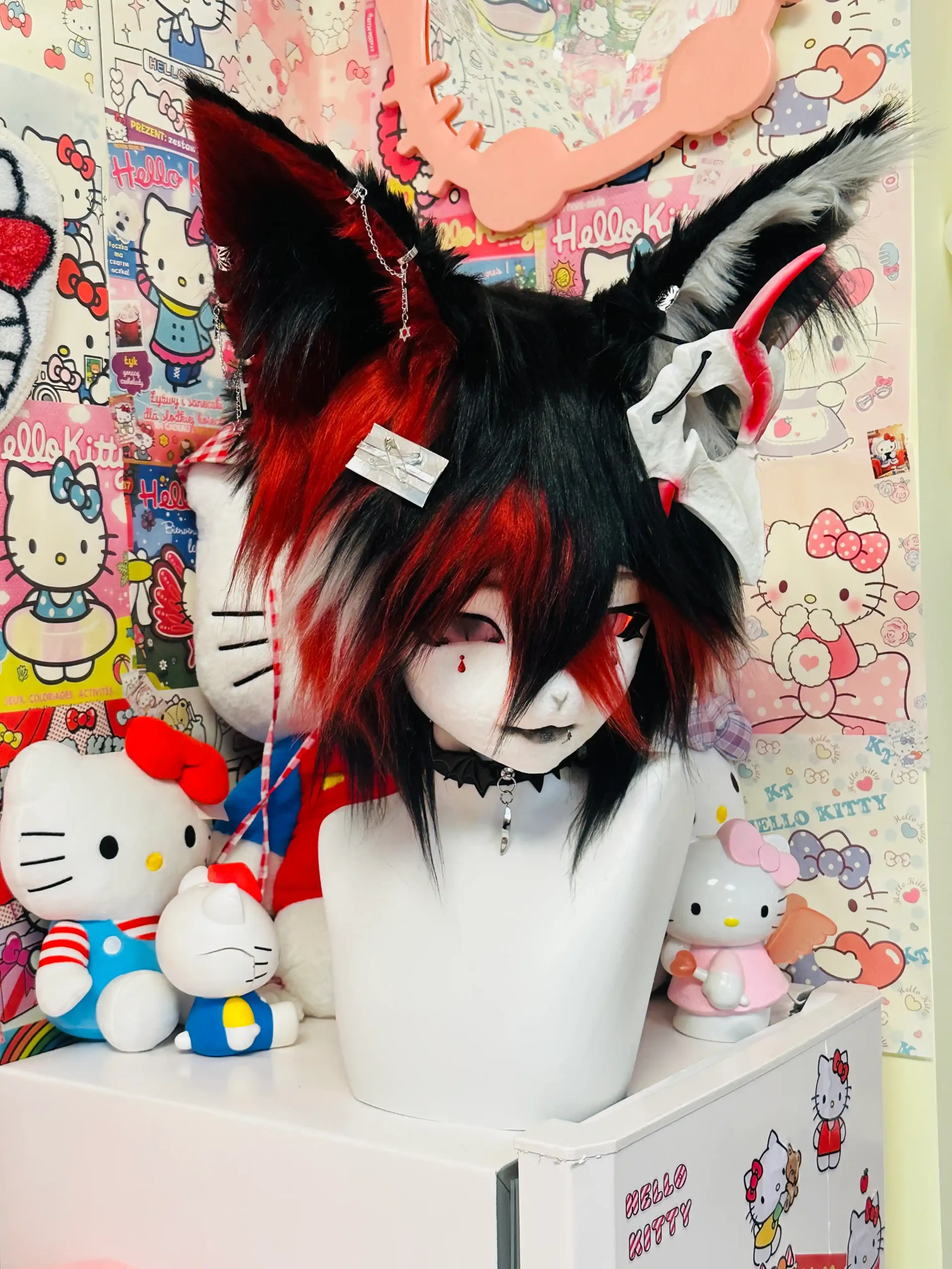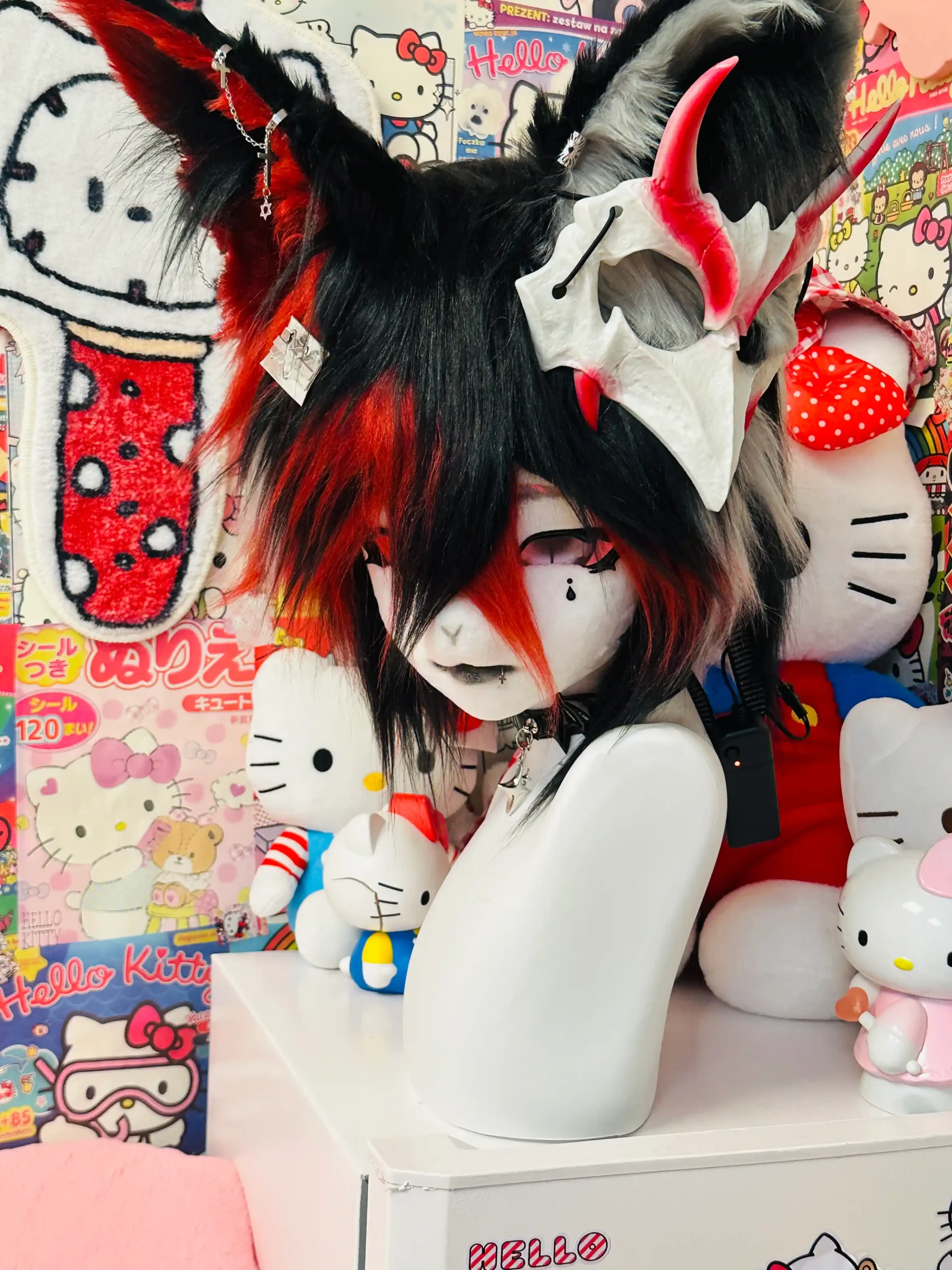 • Features: Horned accents, layered fur texture, high-contrast ears, metallic & gothic accessories