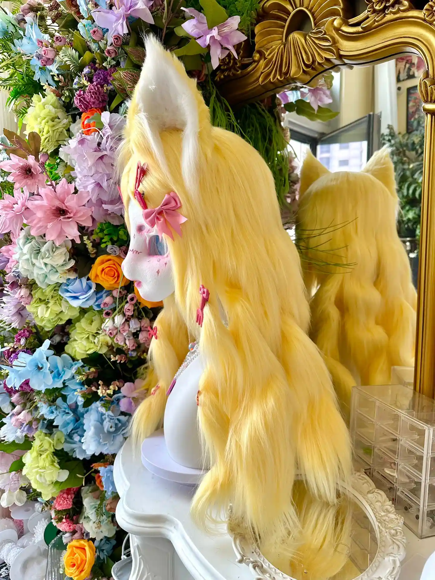 Fursuit Head – Lemon Pop Yume Kemono (Butter Yellow & Candy Pink)