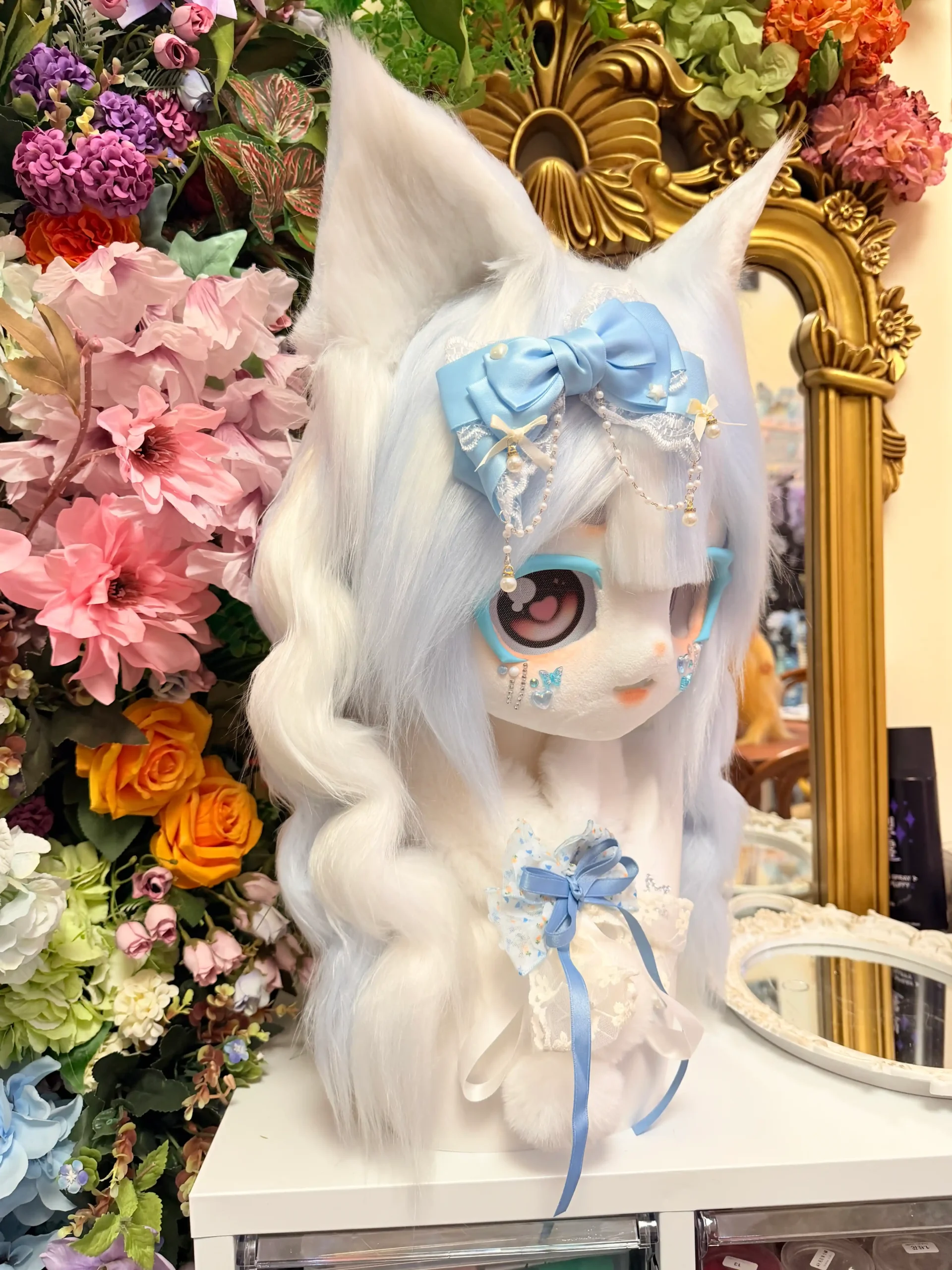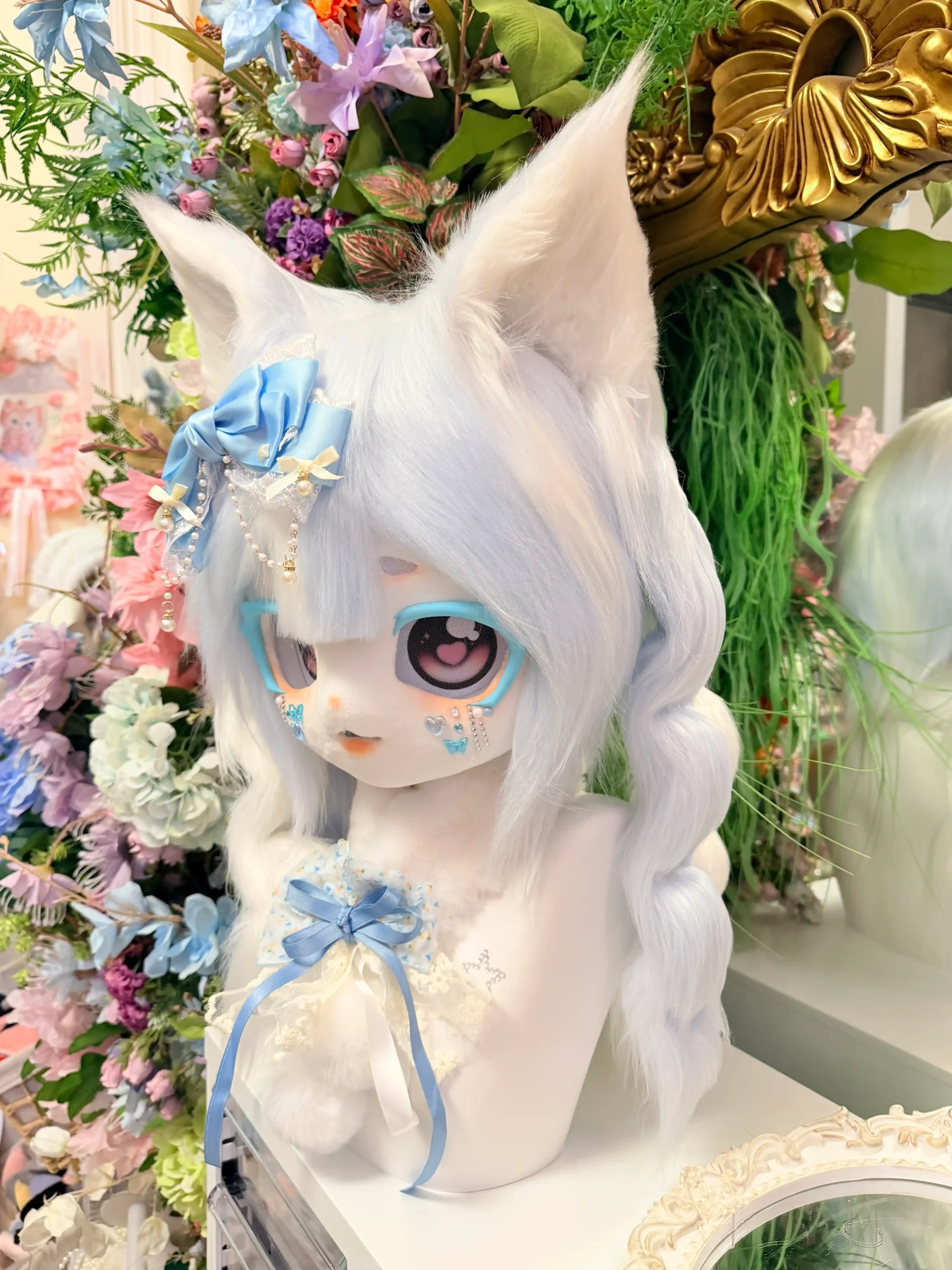 Fursuit Head – Sky Lace Sweet Kemono (White & Baby Blue)